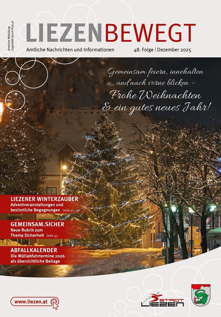 Auch 2025 darf sich Liezen wieder auf ein umfassendes und stimmungsvolles Adventprogramm freuen. Unter dem Titel „Liezener Winterzauber" bündelt die Stadt sämtliche traditionellen Vorweihnachtsveranstaltungen, die auch heuer wieder dank des Engagements vieler Beteiligter stattfinden können.